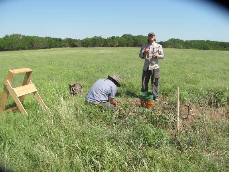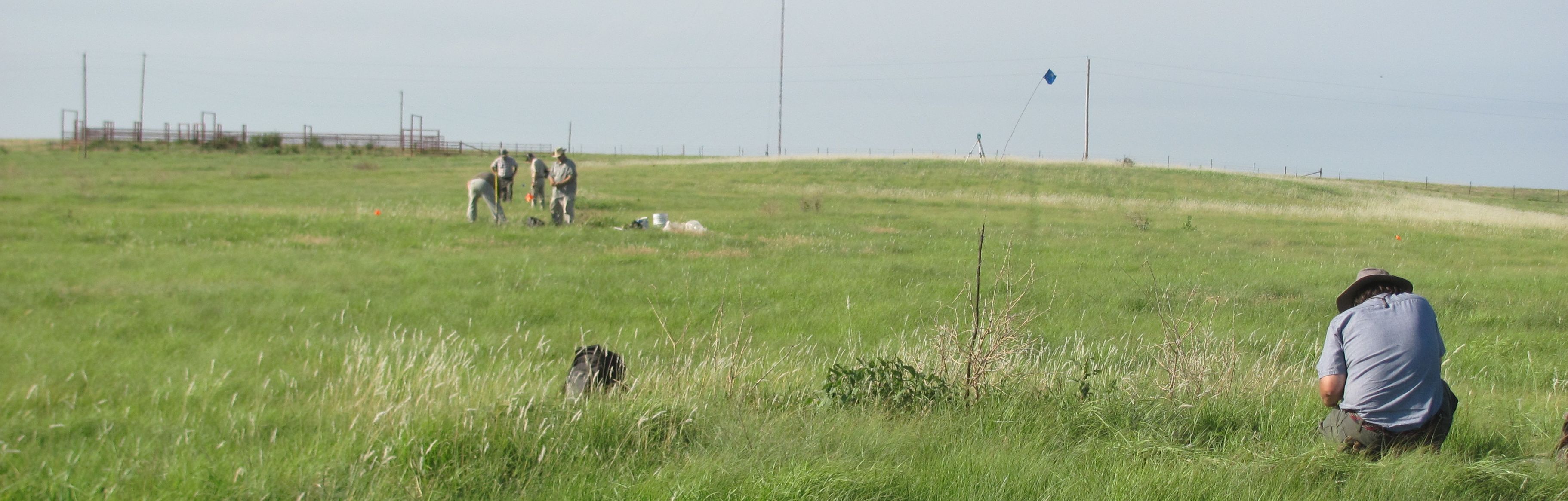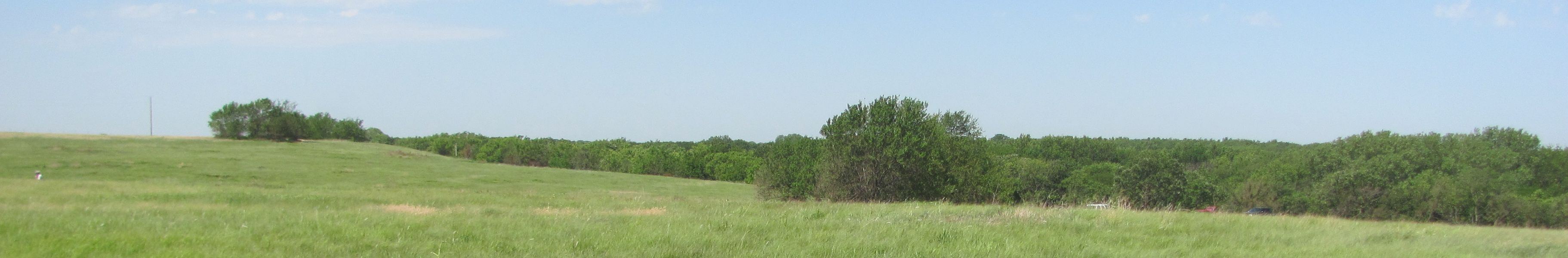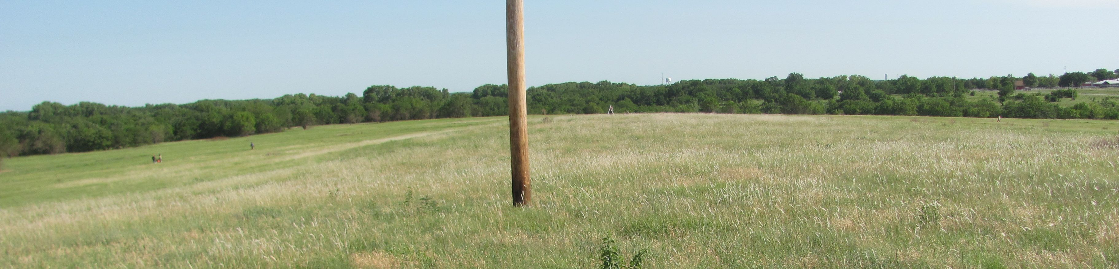 Walnut Valley Field School near Augusta As originally defined by Waldo Wedel (1959), the Great Bend Aspect contained two subdivisions, the Little River and Lower Walnut foci. More recent work has shown that the Little River focus needs to be subdivided. Sites near Marion County and those in McPherson County are two expressions of a single unit, while the remaining sites of the focus, on Cow Creek and the Little Arkansas, are somewhat variable and may require subdivision as well. Zehnder (1998) has proposed separating the McPherson sites from Little River and placing them in a Lindsborg phase. Two currently free-floating taxa – the Pratt complex and the Neosho focus – may eventually be assigned to the same unit as the various divisions of Great Bend. Sites in the vicinity of Augusta have not been analyzed sufficiently to allow placement.. 14BU313 Walnut Valley site is the Great Bend Aspect. Age Settlement Pattern The Walnut River rises in northern Butler County and flows generally southward through Butler and Cowley Counties, past the towns of El Dorado, Augusta, Winfield and Douglass. It joins the Arkansas River at Arkansas City. The Walnut's principal tributaries are the Whitewater River, which joins it at Augusta, and the Little Walnut River, which joins it in southern Butler County. The Walnut River drainage basin comprises 2,380 square miles (6,200 km2) in an ecoregion characterized by rocky, rolling hills and prairie. Elevations range from 1,050 to 1,625 feet (320 to 495 m) in the basin. Average precipitation, mostly summer rainfall, varies from 32 to 38 inches (810 to 970 mm) annually. Tallgrass prairie is the most common vegetation, covering 66 percent of the land. Crop land covers 23 percent and woodlands cover five percent. Major crops are wheat, soybeans, cotton, hay, sorgum, and corn. Cattle are the most important livestock.[2] Near the mouth of the Walnut River, just east of Arkansas City, are a large number of archaeological sites. These are believed to be the remains of a Indian settlement visited in 1601 by New Mexico governor Juan de Onate. Onate called the Indians Rayados. They were almost certainly Wichita Indians. Based on Onate's description of the settlement, 10,000 or more Wichita lived along several miles of the Walnut River.[5][6][7] Midden looking South