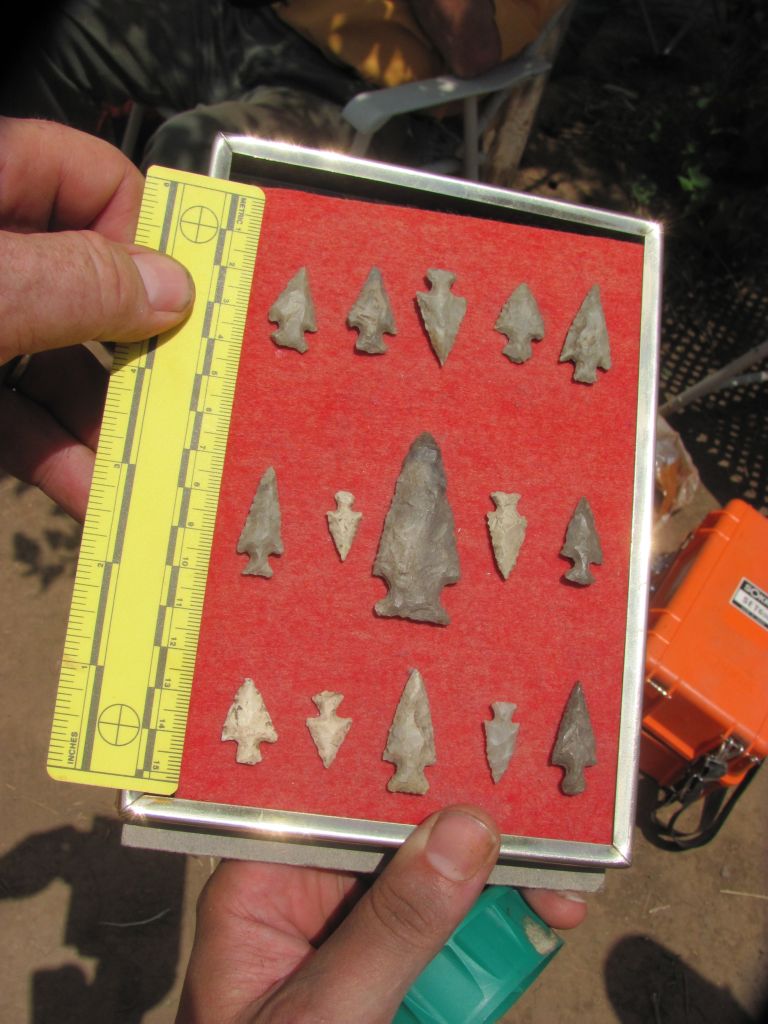 Walnut Valley Field School As originally defined by Waldo Wedel (1959), the Great Bend Aspect contained two subdivisions, the Little River and Lower Walnut foci. More recent work has shown that the Little River focus needs to be subdivided. Sites near Marion County and those in McPherson County are two expressions of a single unit, while the remaining sites of the focus, on Cow Creek and the Little Arkansas, are somewhat variable and may require subdivision as well. Zehnder (1998) has proposed separating the McPherson sites from Little River and placing them in a Lindsborg phase. Two currently free-floating taxa – the Pratt complex and the Neosho focus – may eventually be assigned to the same unit as the various divisions of Great Bend. Sites in the vicinity of Augusta have not been analyzed sufficiently to allow placement.. 14CO327 Walnut Valley site is not Great Bend Aspect. There is no evidence of Buffalo hunting. Age Settlement Pattern The Walnut River rises in northern Butler County and flows generally southward through Butler and Cowley Counties, past the towns of El Dorado, Augusta, Winfield and Douglass. It joins the Arkansas River at Arkansas City. The Walnut's principal tributaries are the Whitewater River, which joins it at Augusta, and the Little Walnut River, which joins it in southern Butler County. The Walnut River drainage basin comprises 2,380 square miles (6,200 km2) in an ecoregion characterized by rocky, rolling hills and prairie. Elevations range from 1,050 to 1,625 feet (320 to 495 m) in the basin. Average precipitation, mostly summer rainfall, varies from 32 to 38 inches (810 to 970 mm) annually. Tallgrass prairie is the most common vegetation, covering 66 percent of the land. Crop land covers 23 percent and woodlands cover five percent. Major crops are wheat, soybeans, cotton, hay, sorgum, and corn. Cattle are the most important livestock.[2] Near the mouth of the Walnut River, just east of Arkansas City, are a large number of archaeological sites. These are believed to be the remains of a Indian settlement visited in 1601 by New Mexico governor Juan de Onate. Onate called the Indians Rayados. They were almost certainly Wichita Indians. Based on Onate's description of the settlement, 10,000 or more Wichita lived along several miles of the Walnut River.[5][6][7] \